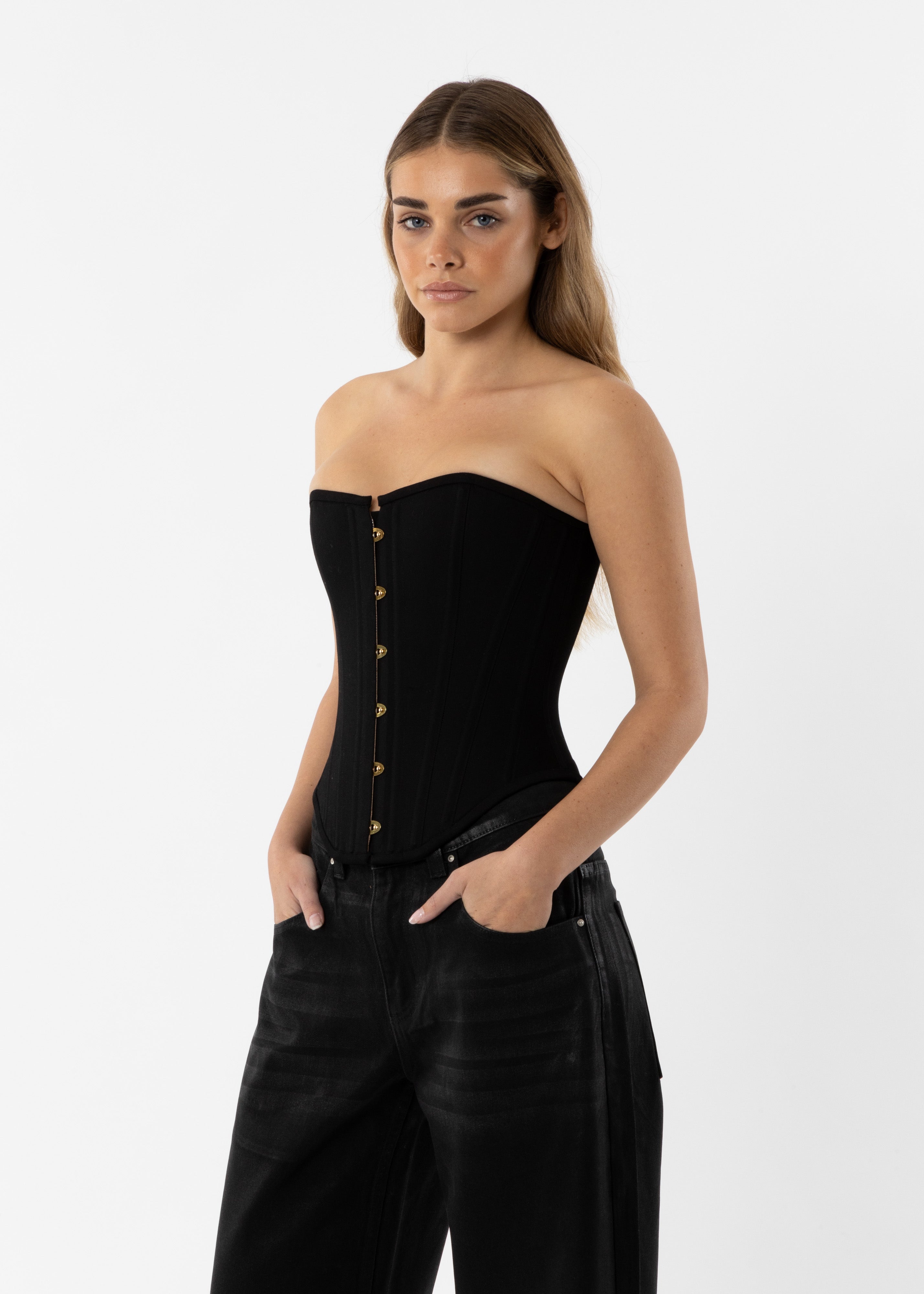 Thoughtfully designed with boning that sculpts and defines the body's natural curves, while also providing comfort with a soft satin lining.